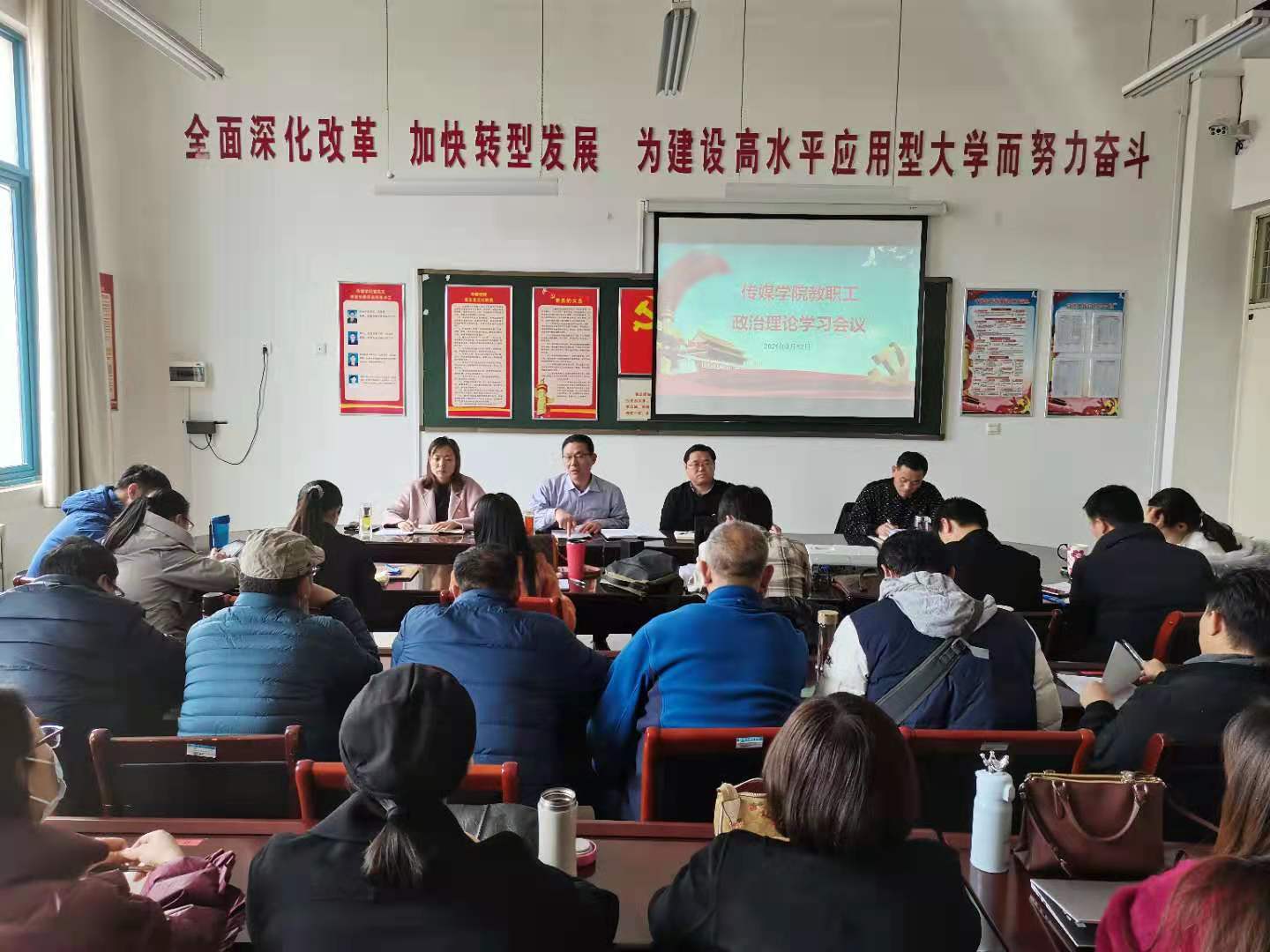 3月12日下午,传媒学院在汉梁楼343会议室召开政治理论学习会议。传媒学院党总支书记沈振华、院长冉祥华、党总支副书记孟学超、副院长刘培培出席会议,传媒学院全体教职工参加会议。会议由沈振华主持。