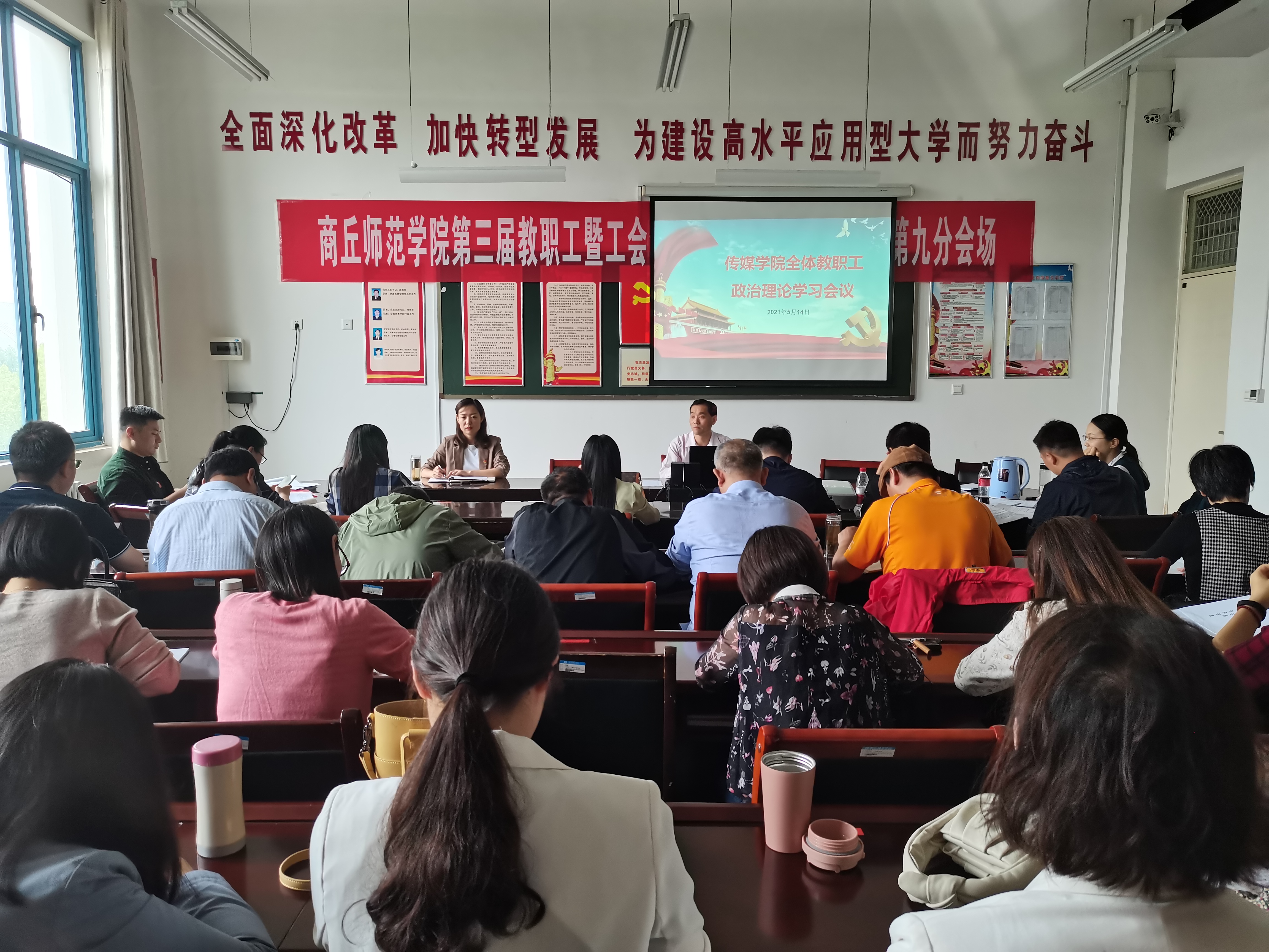 5月14日,传媒学院在汉梁楼343会议室召开教职工政治理论学习会议。传媒学院党总支副书记孟学超、副院长刘培培出席会议,传媒学院全体教职工参加会议。会议由孟学超主持。