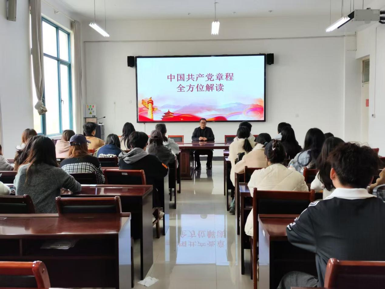 10月21日,党委书记郑颖贞上了以“严格践行党员标准,发挥先锋模范作用”为主题的专题党课。10月22日,党委副书记高原围绕“新时代新征程进一步全面深化改革推进中国式现代化建设”主题开展党课教育。10月23日,任笑晨聚焦商丘3000年殷商文化,深入解读了三大影响至今的商文化精神。 10月24日上午,石平作了“模范引领,砥砺前行”的主题培训,10月27日,李振礼围绕《中国共产党章程》核心内容展开讲解。10月28日上午,王皖豫围绕“如何做一名合格党员”展开党课培训。10月28日下午,传媒学院党委组织学生入党积极分子观看了红色电影《1921》。