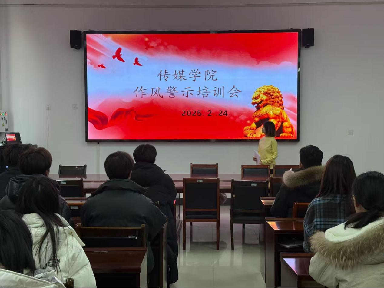 2月24日,传媒学院在汉梁楼345召开作风警示会。任笑晨老师从思想教育、作风建设等方面提出明确要求,引导学生干部端正态度、履职尽责,树立良好形象。