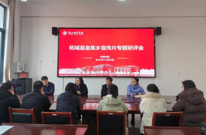 12月29日下午,传媒学院紧扣校地结对帮扶任务,组织召开柘城县皇集乡宣传片专题研评会。学院党委书记郑颖贞、院长杨春风、副院长叶玉露及广播电视编导专业代表教师共同参与此次研讨。