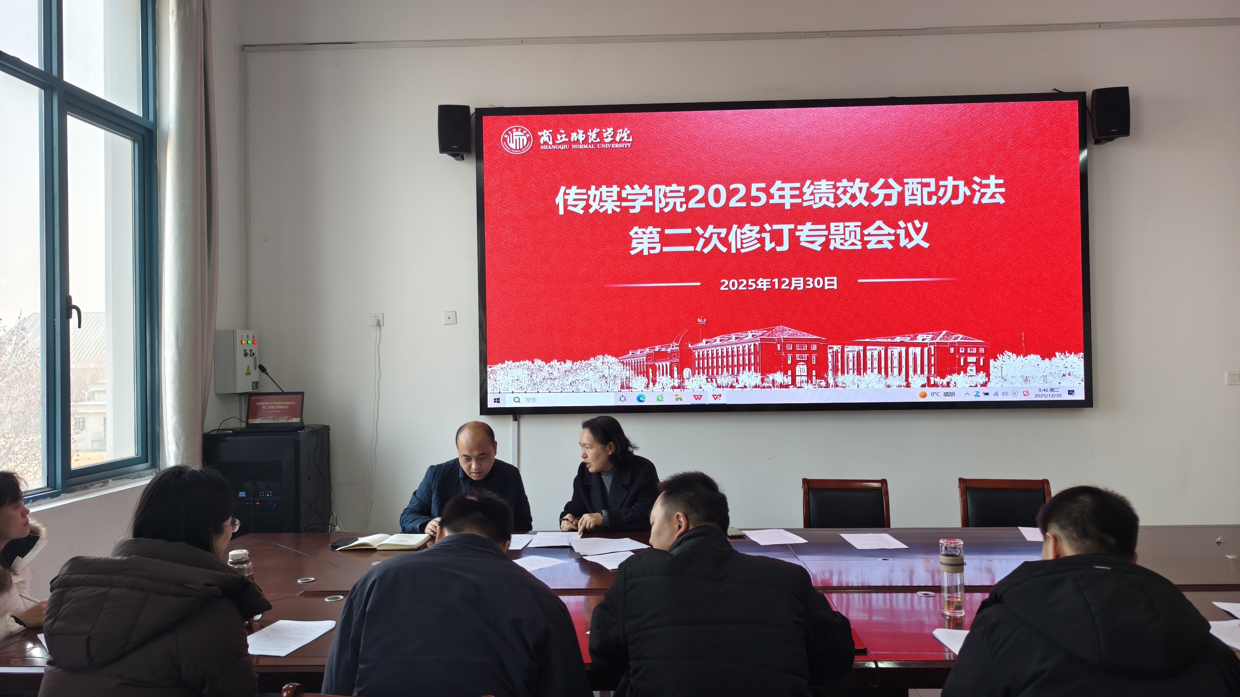 2025年12月30日,传媒学院在汉梁楼345会议室召开“2025年绩效分配办法第二次修订专题会议”。本次会议是继12月17日首次修订会后,对绩效分配办法的进一步修订和完善。学院领导班子、纪委全体成员、各系主任和骨干教师代表共同参会。会议由院长杨春风、党委副书记高原共同主持。