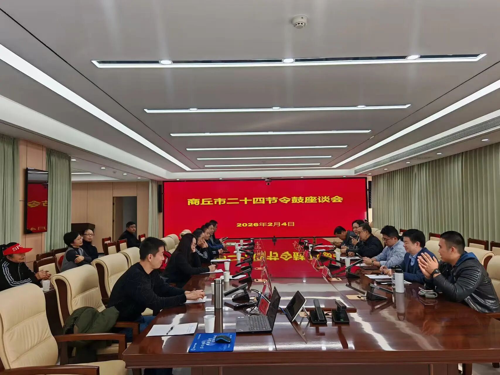 2月4日下午,在商丘市气象局五楼会议室,市二十四节气文化遗产保护传承利用工作机制专班召开“商丘市二十四节令鼓座谈会”,院长杨春风应邀出席并作专题发言。马来西亚柔佛新山南方大学学院文化与社会服务委员会主席、艺术馆长、发展委员会副主席陈再藩,市气象局、市民间文艺家协会代表共同参与座谈。市气象局副局长张杰主持会议。