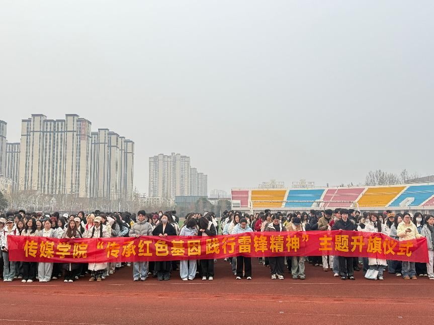 3 月 23 日清晨,传媒学院举行 “传承红色基因,践行雷锋精神” 主题升旗仪式。学生处副处长卢剑平、学生处刘阳、传媒学院党委书记郑颖贞、院长杨春风、党委副书记高原,全体辅导员及在校学生参加仪式,仪式由高原主持。