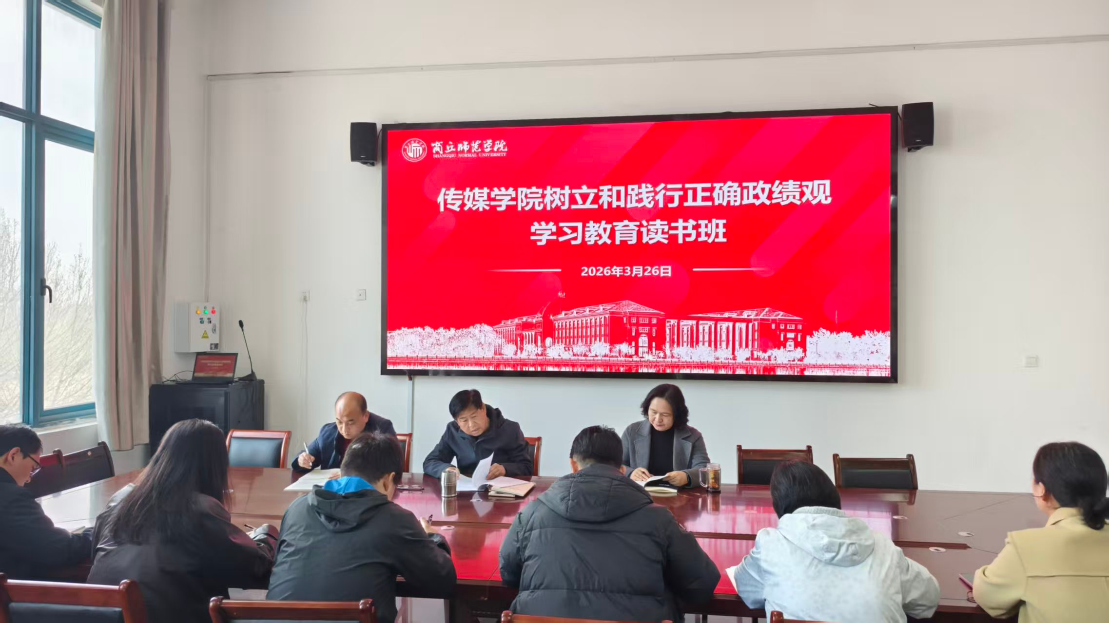 3 月 26 日上午,学院党委书记郑颖贞领学了《习近平关于树立和践行正确政绩观论述摘编》的部分内容和《习近平总书记地方工作期间坚持正确政绩观生动实践》中的“河北正定篇”“福建篇”,通报了《传媒学院党委政绩观主要问题清单》。