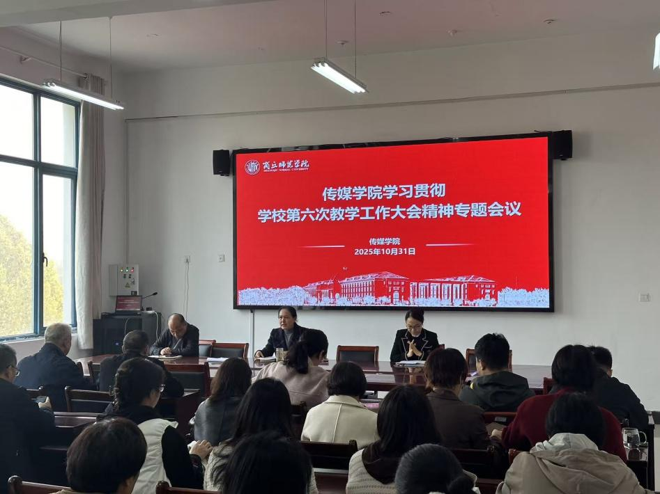 10月31日上午,传媒学院在汉梁楼345会议室召开深入学习贯彻学校第六次教学工作大会精神专题会议。学院领导班子出席了会议,学院全体教师参加了本次大会,会议由院长杨春风主持。